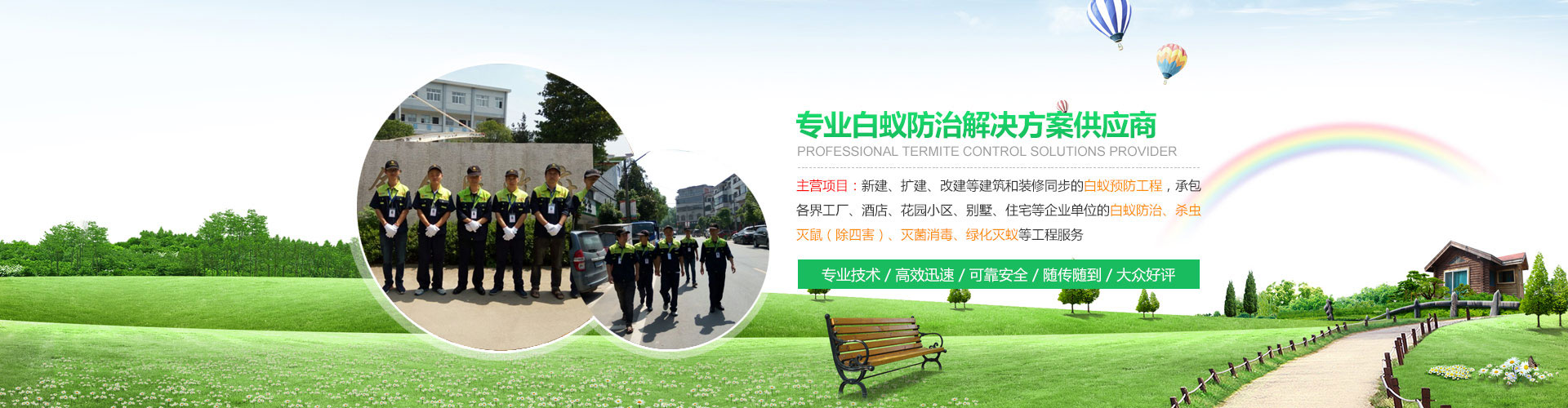 為新建房屋、建筑、家庭裝修提供白蟻預防工程,為家居、園林、堤壩提供白蟻滅治服務。