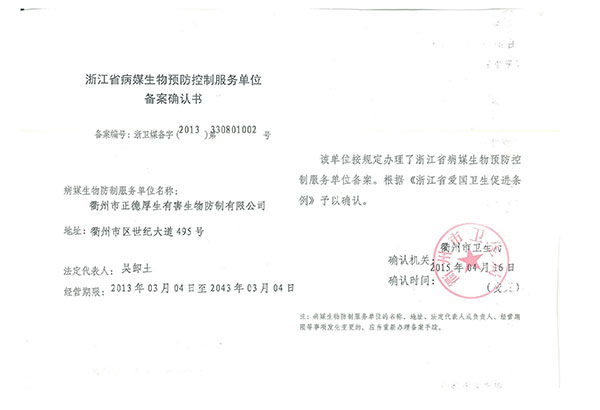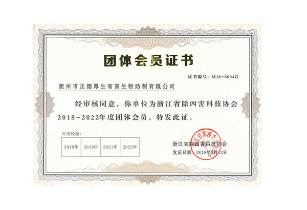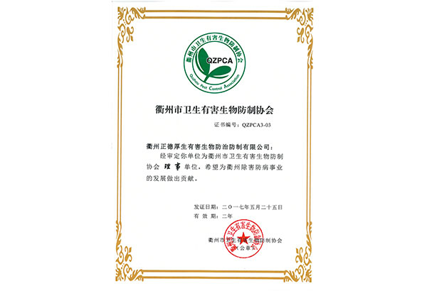 浙江德宜居環境科技有限公司現為浙江省除四害科技協會A級資質,同時也是浙江省除四害科技協會會員單位、中國有害生物防制協會會員單位,是國內專業從事蟲害控制管理(PMP)技術與理念的專業蟲害管理公司之一。